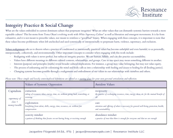 Parts work and embodied practice offer us tools for healing towards integrity. Explore conditioned value systems and practice ways of being to shape a resonant future.